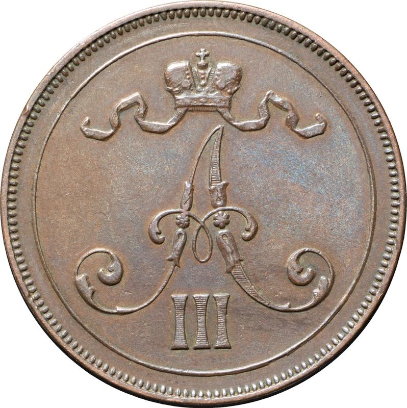 Find out the current coin value of the Finnish 10 Pennia 1891 . This copper coin from the times of Grand Duchy struck at the Helsinki Mint. Wondering how much a coin like this is worth? The record price belongs to the lot 183 sold at the Empire auction for RUB 35,000. Bidding took place April 28, 2012.