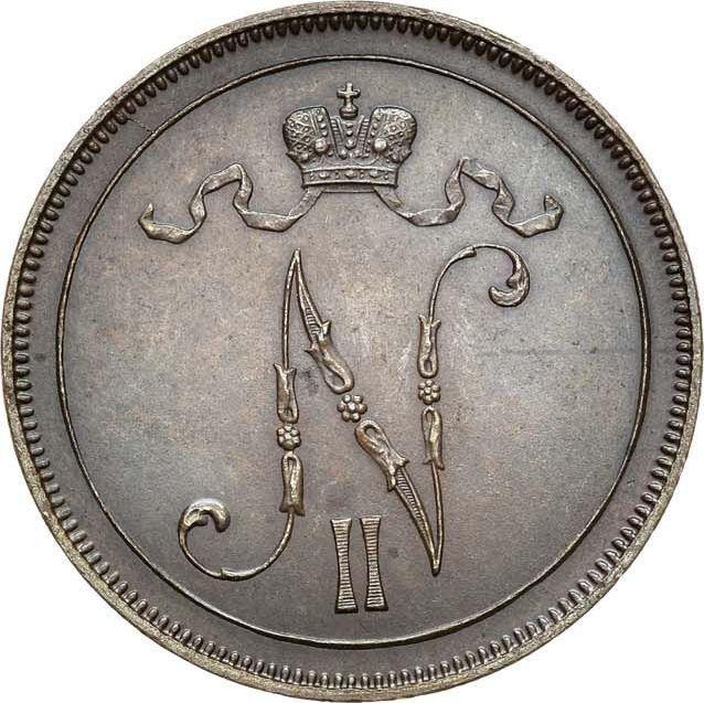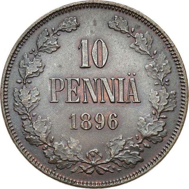 Find out the current coin value of the Finnish 10 Pennia 1896 . This copper coin from the times of Grand Duchy struck at the Helsinki Mint. Wondering how much a coin like this is worth? The record price belongs to the lot 33 sold at the Holmasto auction for EUR 2,800. Bidding took place March 8, 2025.