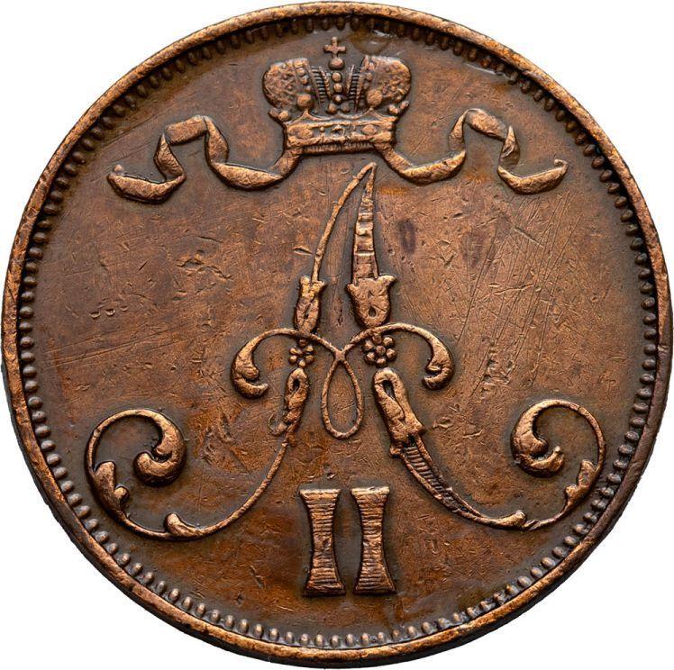 Find out the current coin value of the Finnish 5 Pennia 1875 . This copper coin from the times of Grand Duchy struck at the Helsinki Mint. Wondering how much a coin like this is worth? The record price belongs to the lot 132 sold at the Rare Coins auction for USD 1,200. Bidding took place April 21, 2018.