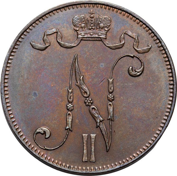 Find out the current coin value of the Finnish 5 Pennia 1899 . This copper coin from the times of Grand Duchy struck at the Helsinki Mint. Wondering how much a coin like this is worth? The record price belongs to the lot 3465 sold at the Fritz Rudolf Künker GmbH & Co. KG auction for EUR 600. Bidding took place March 10, 2009.