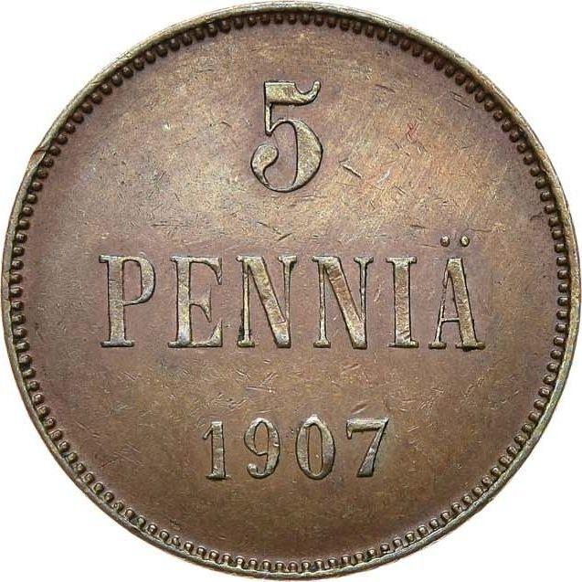 Find out the current coin value of the Finnish 5 Pennia 1907 . This copper coin from the times of Grand Duchy struck at the Helsinki Mint. Wondering how much a coin like this is worth? The record price belongs to the lot 59 sold at the AURORA auction for RUB 90,000. Bidding took place April 18, 2024.