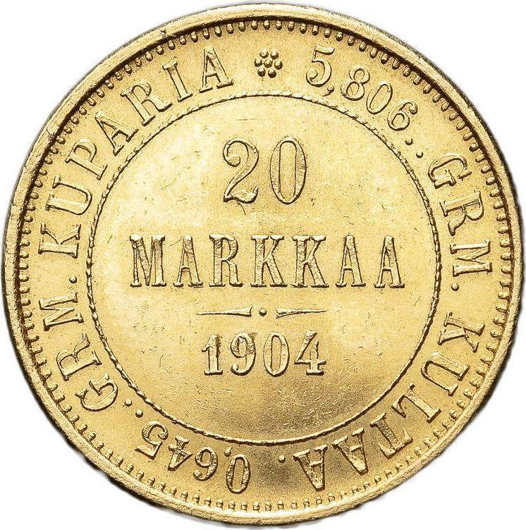 Find out the current coin value of the Finnish 20 Mark 1904 with mark L. This gold coin from the times of Grand Duchy struck at the Helsinki Mint. Wondering how much a coin like this is worth? The record price belongs to the lot 252 sold at the AURORA auction for RUB 190,000. Bidding took place July 24, 2025.