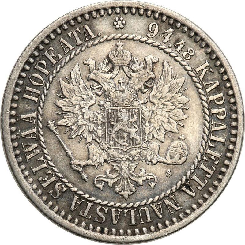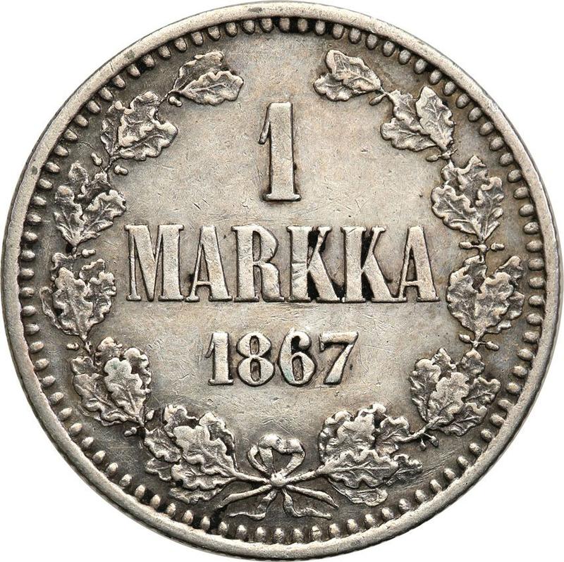 Find out the current coin value of the Finnish 1 Mark 1867 with mark S. This silver coin from the times of Grand Duchy struck at the Helsinki Mint. Wondering how much a coin like this is worth? The record price belongs to the lot 1196 sold at the AB Philea & Myntkompaniet auction for EUR 6,102. Bidding took place November 11, 2023.