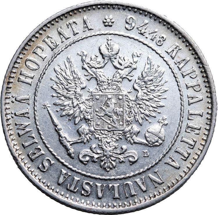 Find out the current coin value of the Finnish 1 Mark 1908 with mark L. This silver coin from the times of Grand Duchy struck at the Helsinki Mint. Wondering how much a coin like this is worth? The record price belongs to the lot 427 sold at the MS67 auction for RUB 115,000. Bidding took place December 18, 2019.