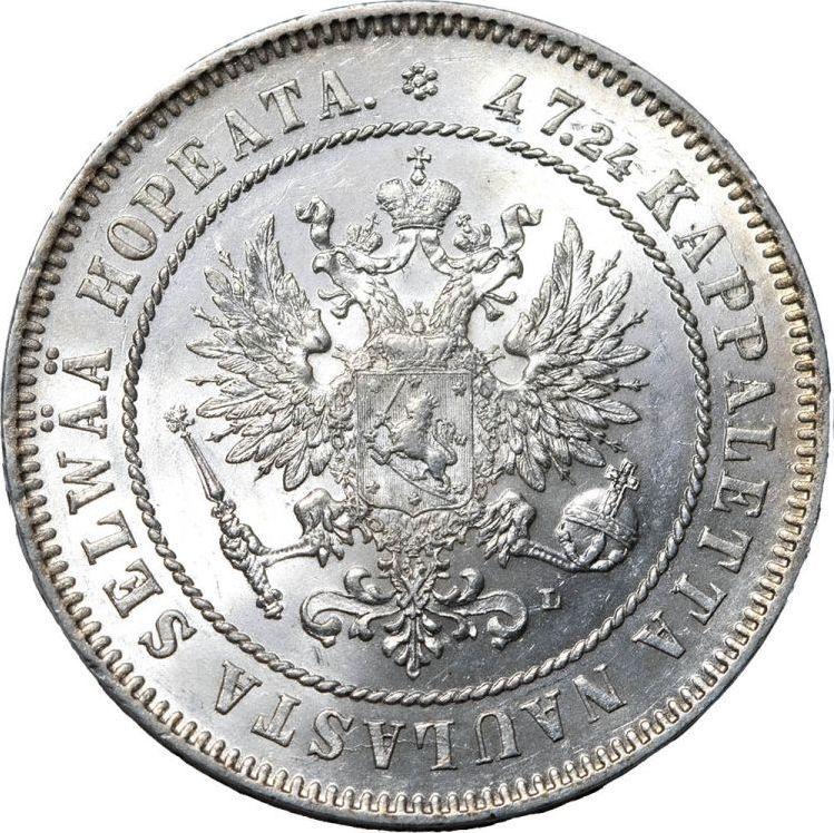 Find out the current coin value of the Finnish 2 Mark 1905 with mark L. This silver coin from the times of Grand Duchy struck at the Helsinki Mint. Wondering how much a coin like this is worth? The record price belongs to the lot 160 sold at the AURORA auction for RUB 550,000. Bidding took place April 18, 2024.