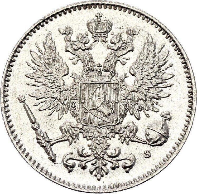 Find out the current coin value of the Finnish 50 Pennia 1915 with mark S. This silver coin from the times of Grand Duchy struck at the Helsinki Mint. Wondering how much a coin like this is worth? The record price belongs to the lot 843 sold at the Rare Coins auction for USD 900. Bidding took place November 11, 2017.