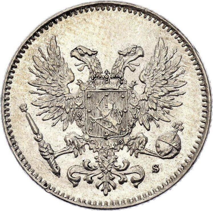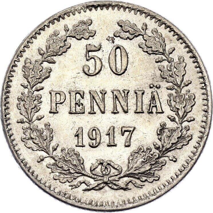 Find out the current coin value of the Finnish 50 Pennia 1917 with mark S. Eagle without crown. This silver coin from the times of Grand Duchy struck at the Helsinki Mint. Wondering how much a coin like this is worth? The record price belongs to the lot 25079 sold at the Heritage Auctions auction for USD 990. Bidding took place November 9, 2025.