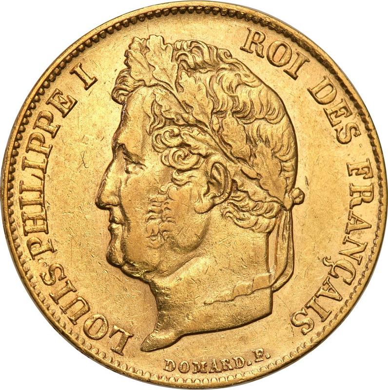 Find out the current coin value of the French 20 Francs 1839 with mark A. This gold coin from the times of Louis Philippe I struck at the Paris Mint. Wondering how much a coin like this is worth? The record price belongs to the lot 21170 sold at the Heritage Auctions auction for USD 7,475. Bidding took place January 3, 2010.