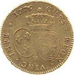 Find out the current coin value of the French Double Louis d'Or 1776 with mark BB. This gold coin from the times of Louis XVI struck at the Strasbourg Mint. Wondering how much a coin like this is worth? The record price belongs to the lot 948 sold at the Spink auction for GBP 615. Bidding took place October 6, 2004.