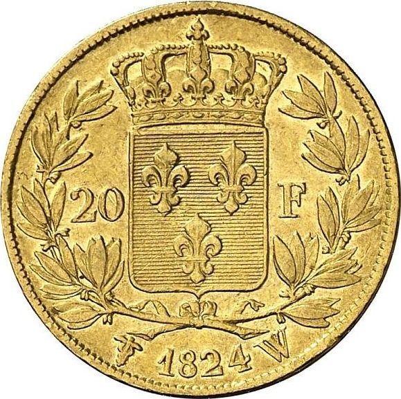 20 Francs 1824 W "Type 1816-1824" (France, Louis XVIII)