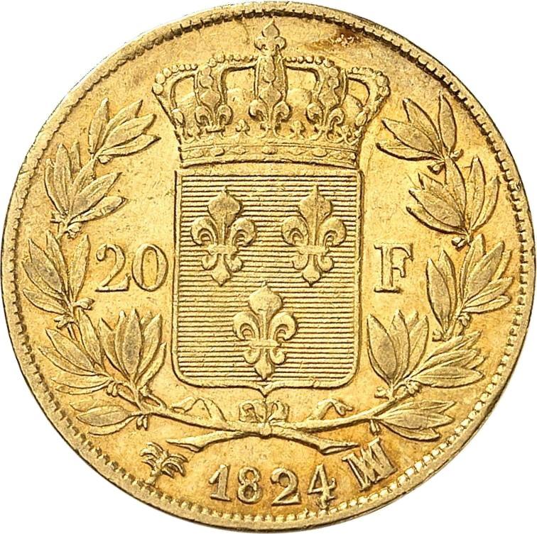 How much is the gold coin of Louis XVIII 20 Francs 1824 MA, Marseille?