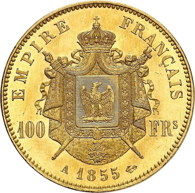 Find out the current coin value of the French 100 Francs 1855 with mark A. This gold coin from the times of Napoleon III struck at the Paris Mint. Wondering how much a coin like this is worth? The record price belongs to the lot 32207 sold at the Heritage Auctions auction for USD 144,000. Bidding took place January 7, 2018.