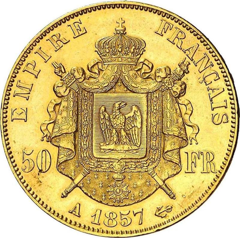 Find out the current coin value of the French 50 Francs 1857 with mark A. This gold coin from the times of Napoleon III struck at the Paris Mint. Wondering how much a coin like this is worth? The record price belongs to the lot 509 sold at the Warin Global Investments auction for EUR 29,880. Bidding took place November 13, 2018.