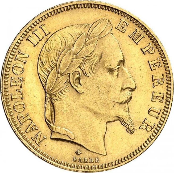 Find out the current coin value of the French 50 Francs 1868 with mark A. This gold coin from the times of Napoleon III struck at the Paris Mint. Wondering how much a coin like this is worth? The record price belongs to the lot 545 sold at the Hess Divo auction for CHF 50,000. Bidding took place December 1, 2016.