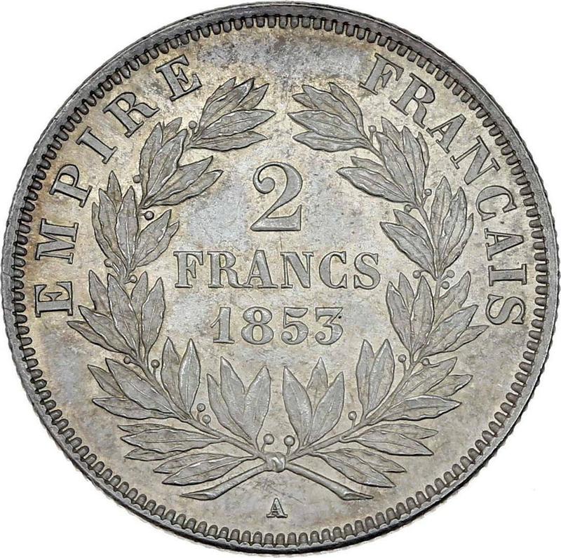 Find out the current coin value of the French 2 Francs 1853 with mark A. This silver coin from the times of Napoleon III struck at the Paris Mint. Wondering how much a coin like this is worth? The record price belongs to the lot 786 sold at the Maison Palombo auction for CHF 27,000. Bidding took place October 21, 2017.