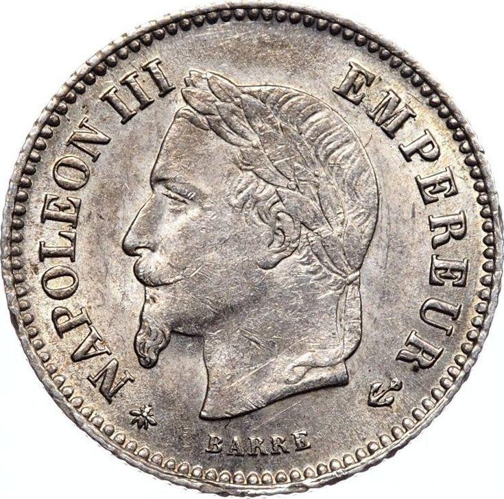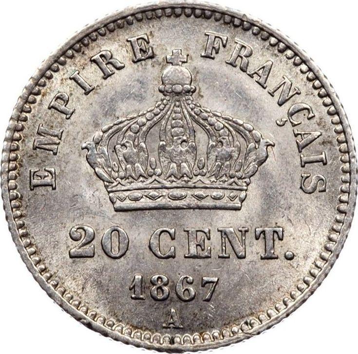 Find out the current coin value of the French 20 Centimes 1867 with mark A. This silver coin from the times of Napoleon III struck at the Paris Mint. Wondering how much a coin like this is worth? The record price belongs to the lot 70614 sold at the Stack's Bowers auction for USD 480. Bidding took place October 12, 2021.
