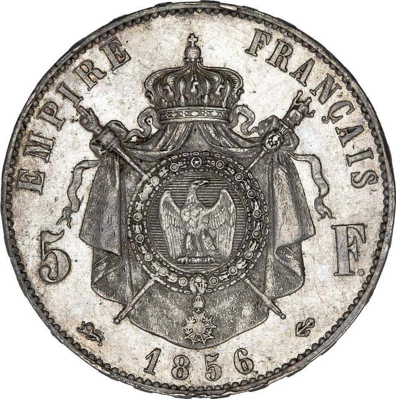 Find out the current coin value of the French 5 Francs 1856 with mark D. This silver coin from the times of Napoleon III struck at the Lyon Mint. Wondering how much a coin like this is worth? The record price belongs to the lot 30225 sold at the Heritage Auctions auction for USD 11,163. Bidding took place August 3, 2017.
