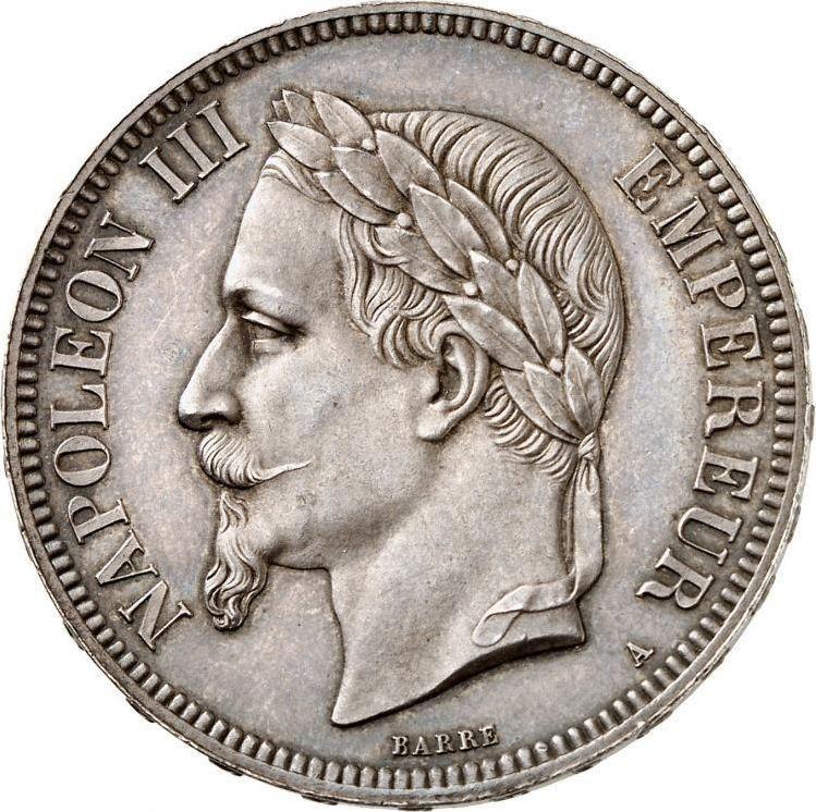 Find out the current coin value of the French 5 Francs 1861 with mark A. This silver coin from the times of Napoleon III struck at the Paris Mint. Wondering how much a coin like this is worth? The record price belongs to the lot 2174 sold at the Auction World auction for JPY 7,200,000. Bidding took place January 20, 2018.