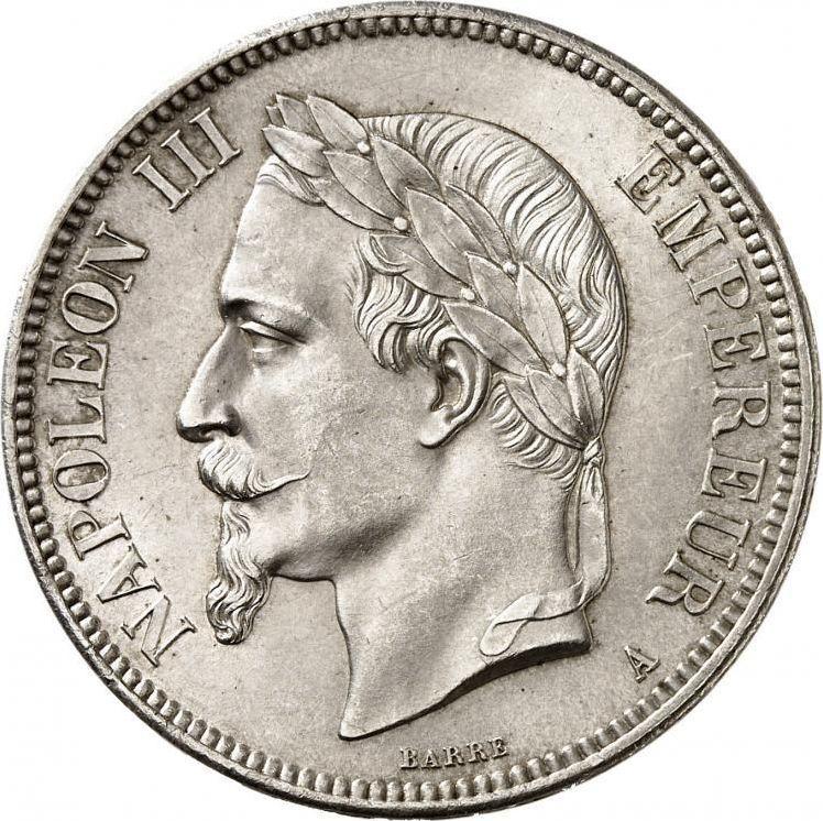 Find out the current coin value of the French 5 Francs 1863 with mark A. This silver coin from the times of Napoleon III struck at the Paris Mint. Wondering how much a coin like this is worth? The record price belongs to the lot 849 sold at the MDC Monaco auction for EUR 6,000. Bidding took place December 1, 2017.