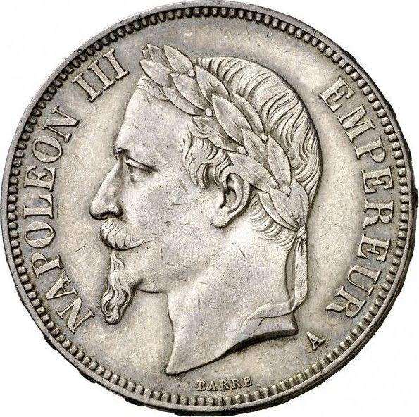 Find out the current coin value of the French 5 Francs 1869 with mark A. This silver coin from the times of Napoleon III struck at the Paris Mint. Wondering how much a coin like this is worth? The record price belongs to the lot 766 sold at the Maison Palombo auction for CHF 55,000. Bidding took place October 22, 2016.