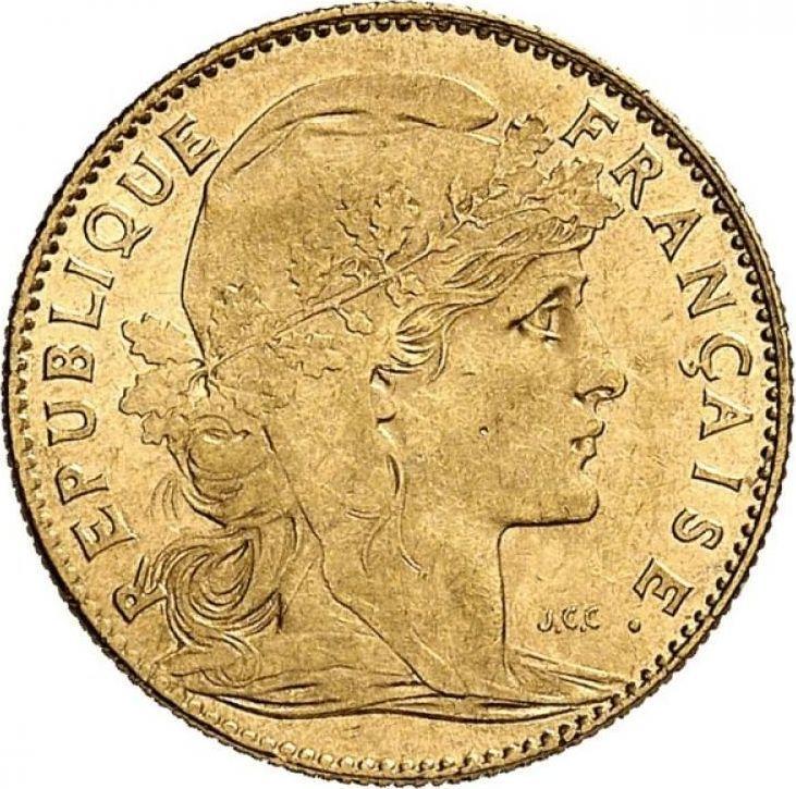 Find out the current coin value of the French 10 Francs 1899 . This gold coin from the times of Third Republic struck at the Paris Mint. Wondering how much a coin like this is worth? The record price belongs to the lot 2551 sold at the Stack's Bowers auction for USD 12,650. Bidding took place January 14, 2008.