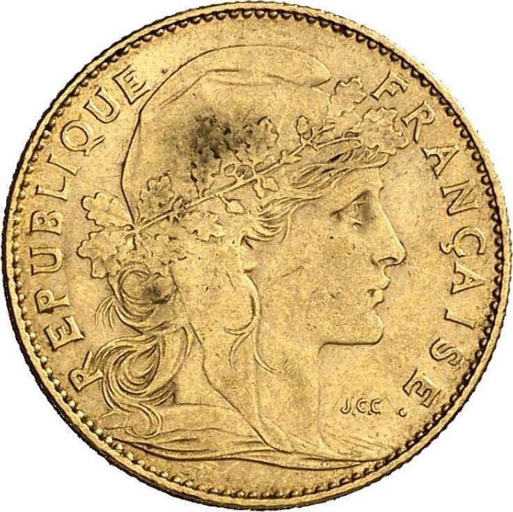 Find out the current coin value of the French 10 Francs 1901 . This gold coin from the times of Third Republic struck at the Paris Mint. Wondering how much a coin like this is worth? The record price belongs to the lot 803 sold at the Monnaies d'Antan auction for EUR 390. Bidding took place May 24, 2025.