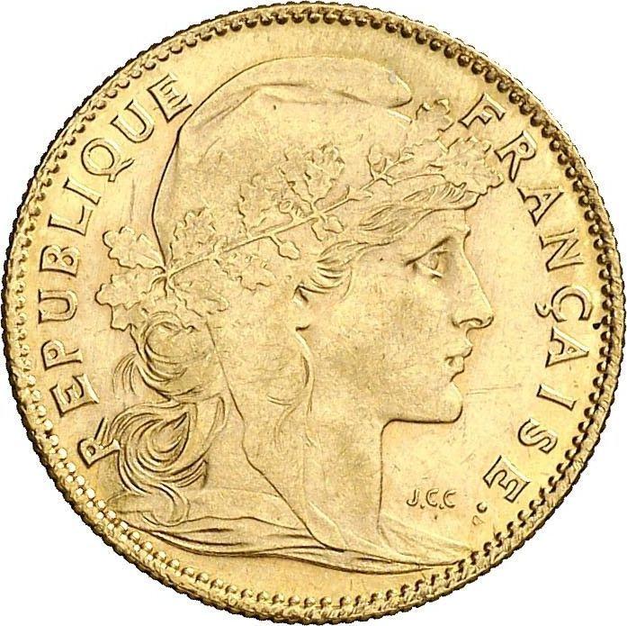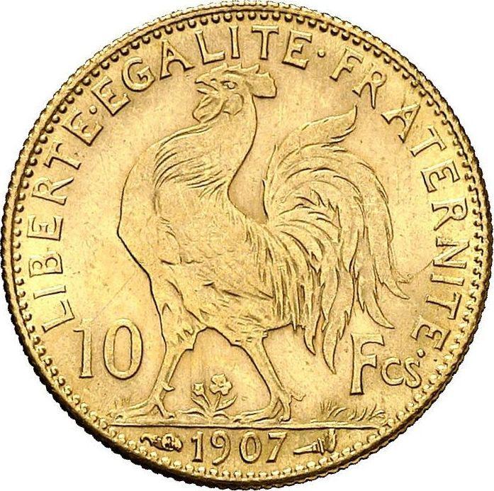 Find out the current coin value of the French 10 Francs 1907 . This gold coin from the times of Third Republic struck at the Paris Mint. Wondering how much a coin like this is worth? The record price belongs to the lot 948 sold at the Bid & Grow Auctions auction for USD 390. Bidding took place March 29, 2025.