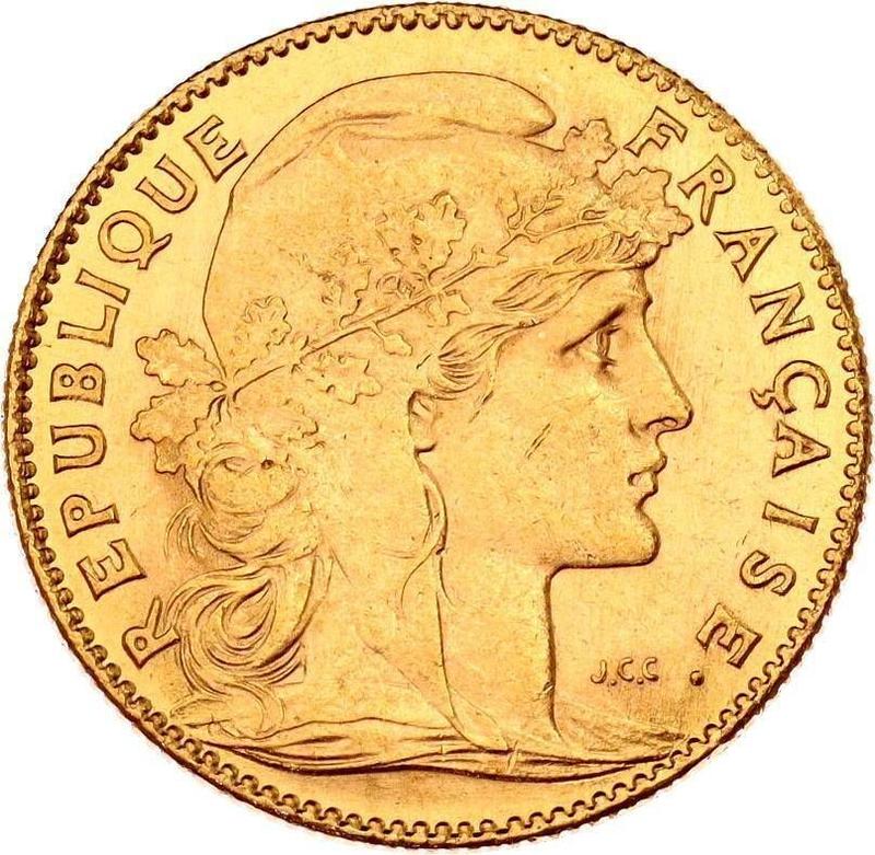 Find out the current coin value of the French 10 Francs 1910 . This gold coin from the times of Third Republic struck at the Paris Mint. Wondering how much a coin like this is worth? The record price belongs to the lot 2043 sold at the MDC Monaco auction for EUR 1,500. Bidding took place June 3, 2025.