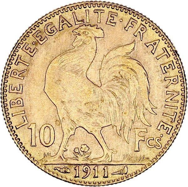 Find out the current coin value of the French 10 Francs 1911 . This gold coin from the times of Third Republic struck at the Paris Mint. Wondering how much a coin like this is worth? The record price belongs to the lot 604 sold at the Classical Numismatic Group, LLC auction for USD 700. Bidding took place May 25, 2011.