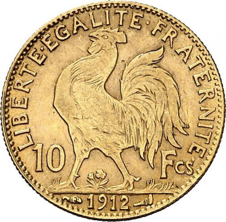 Find out the current coin value of the French 10 Francs 1912 . This gold coin from the times of Third Republic struck at the Paris Mint. Wondering how much a coin like this is worth? The record price belongs to the lot 1632 sold at the Editions V. GADOURY auction for EUR 400. Bidding took place October 4, 2025.