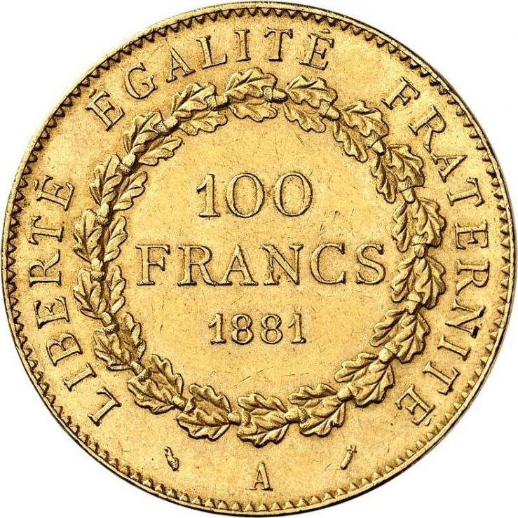 How much is the gold coin of Third Republic 100 Francs 1881 A?