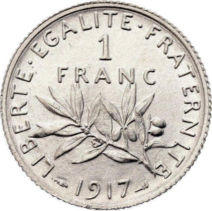 The information on the current value of the French coin 1 Franc 1917 "Sower" is based on actual auction sales of similar specimens. To reflect the current price level, our service monitors over 590 numismatic companies and records auction results in the coin catalog and auction archive. Please note that the exact value depends directly on the coin's condition, so the average price serves only as an approximate estimate.