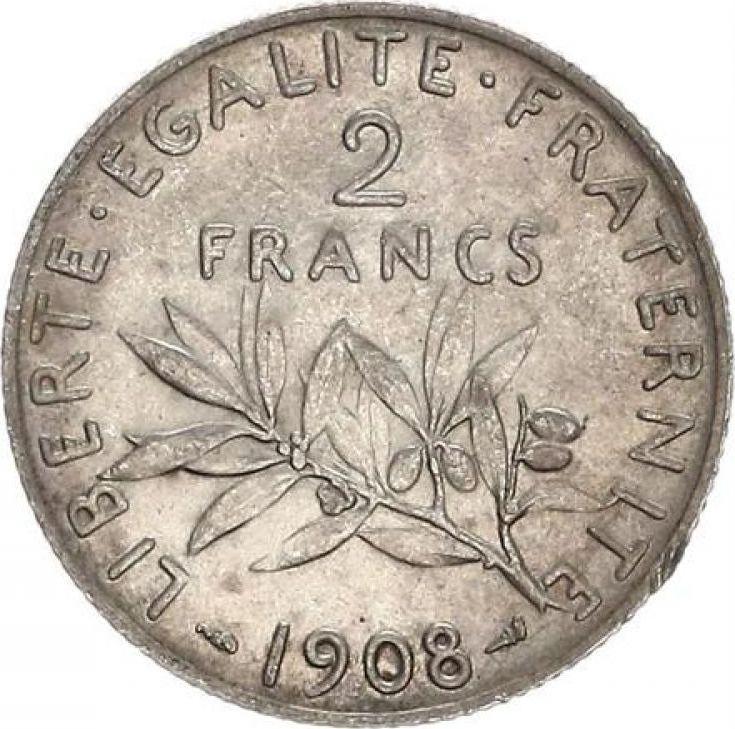How much is the silver coin of Third Republic 2 Francs 1908 "Sower"?