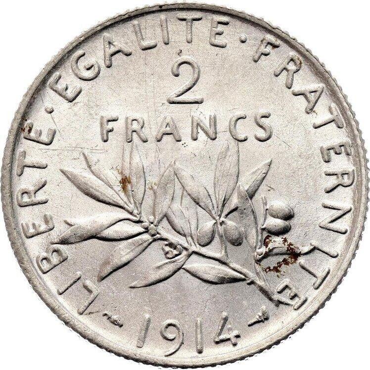 How much is the silver coin of Third Republic 2 Francs 1914 "Sower"?