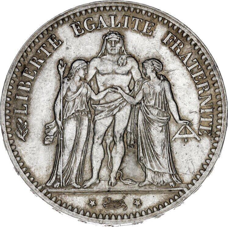 Find out the current coin value of the French 5 Francs 1877 "Hercules" with mark A. This silver coin from the times of Third Republic struck at the Paris Mint. Wondering how much a coin like this is worth? The record price belongs to the lot 30514 sold at the Heritage Auctions auction for USD 8,400. Bidding took place January 12, 2020.