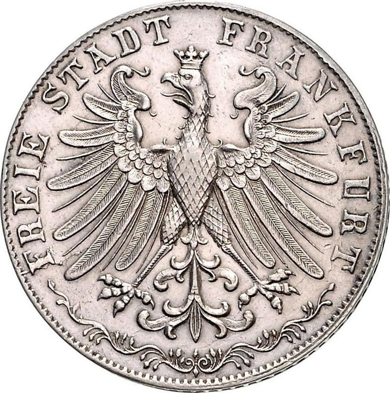 Find out the current coin value of the Frankfurt am Main 2 Gulden 1852 . This silver coin from the times Free City. Wondering how much a coin like this is worth? The record price belongs to the lot 1789 sold at the Fritz Rudolf Künker GmbH & Co. KG auction for EUR 650. Bidding took place July 22, 2024.