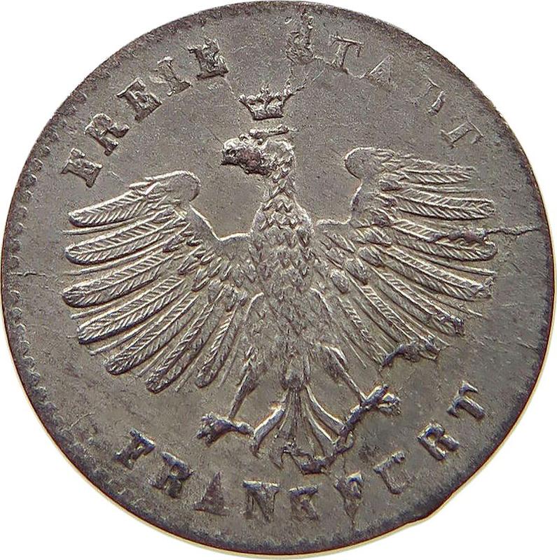 Find out the current coin value of the Frankfurt am Main Kreuzer 1850 . This silver coin from the times Free City