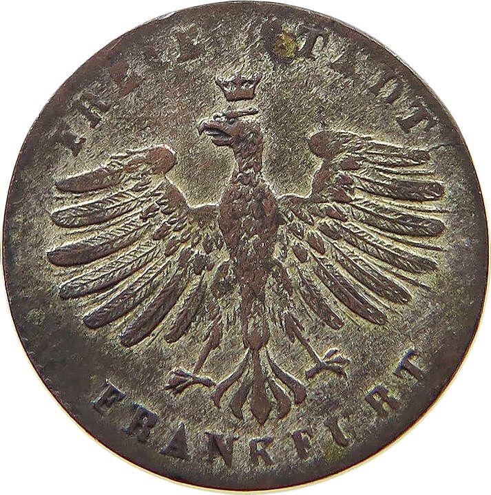 Find out the current coin value of the Frankfurt am Main Kreuzer 1851 . This silver coin from the times Free City. Wondering how much a coin like this is worth? The record price belongs to the lot 2303 sold at the Heidelberger Münzhandlung Herbert Grün auction for EUR 115. Bidding took place May 16, 2013.