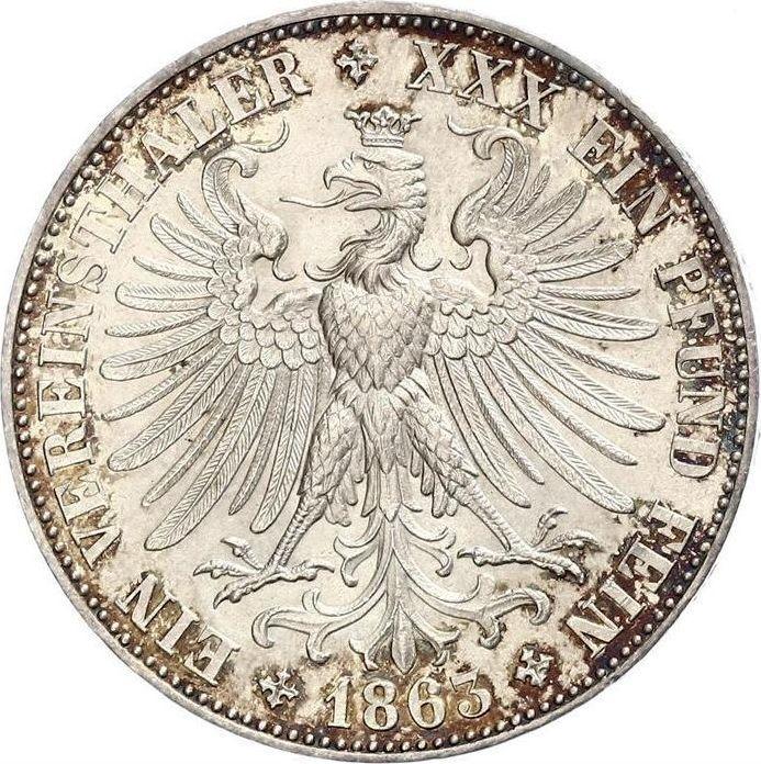 Find out the current coin value of the Frankfurt am Main Thaler 1863 . This silver coin from the times Free City. Wondering how much a coin like this is worth? The record price belongs to the lot 3317 sold at the Auction World auction for JPY 700,000. Bidding took place January 18, 2020.