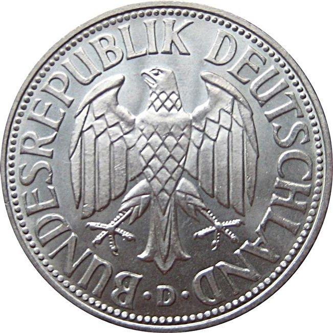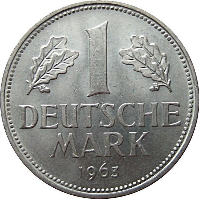 Find out the current coin value of the German 1 Mark 1963 with mark D. This copper-nickel coin from the times FRG struck at the Munich Mint