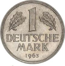 Find out the current coin value of the German 1 Mark 1963 with mark J. This copper-nickel coin from the times FRG struck at the Hamburg Mint. Wondering how much a coin like this is worth? The record price belongs to the lot 7212 sold at the Fritz Rudolf Künker GmbH & Co. KG auction for EUR 90. Bidding took place March 15, 2002.