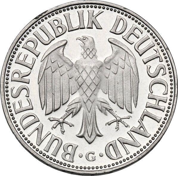 Find out the current coin value of the German 1 Mark 1967 with mark G. This copper-nickel coin from the times FRG struck at the Karlsruhe Mint. Wondering how much a coin like this is worth? The record price belongs to the lot 957 sold at the Leipziger Münzhandlung Heidrun Höhn auction for EUR 1,050. Bidding took place April 16, 2024.