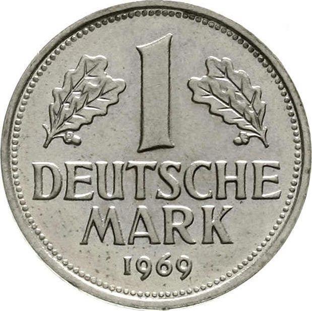 According to the latest data as of December 5, 2025 the average price of a coin 1 Mark 1969 with mark J is 1100 USD. The coin is made of non-precious metal, so in poor condition it may have extremely low value and liquidity.