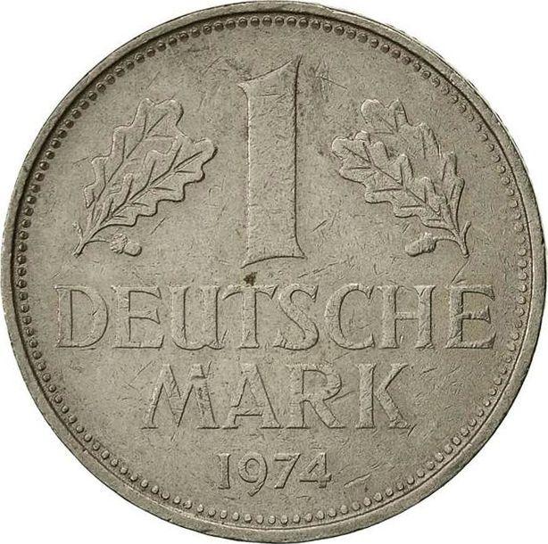 How much is the copper-nickel coin FRG 1 Mark 1974 F?