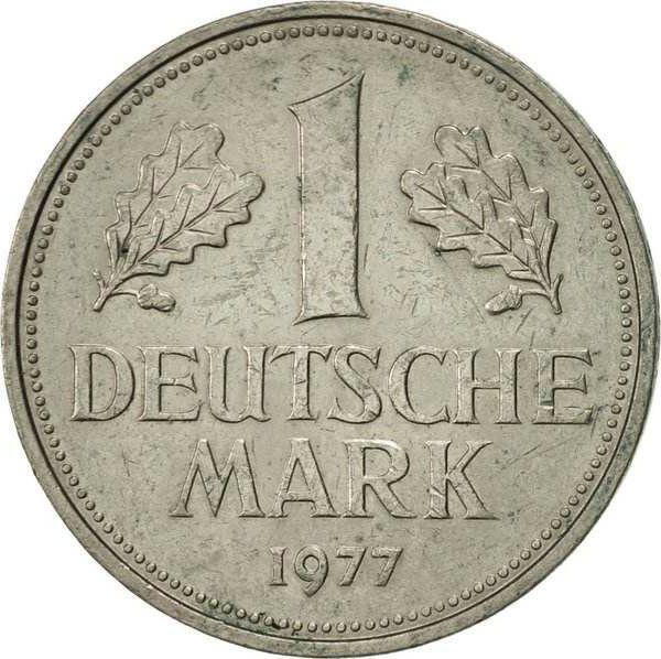 Find out the current coin value of the German 1 Mark 1977 with mark D. This copper-nickel coin from the times FRG struck at the Munich Mint. Wondering how much a coin like this is worth? The record price belongs to the lot 1337 sold at the Auktionshaus Christoph Gärtner auction for EUR 650. Bidding took place October 12, 2020.