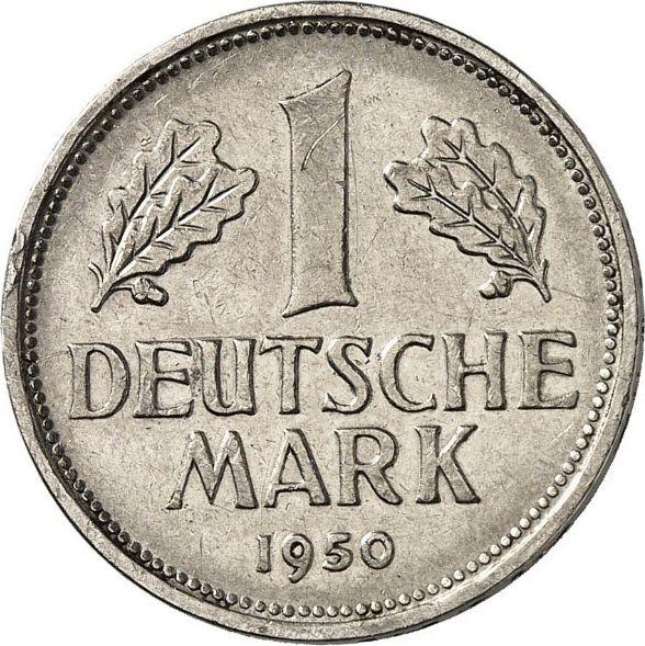 1 Mark 1950 D. Nickel. Deepened arabesques and stars on the edge (Germany, FRG)