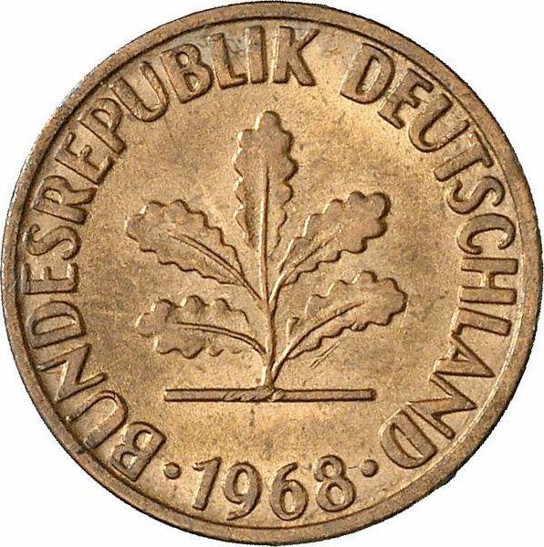 To sell the 1 Pfennig 1968 with the letters J we recommend contacting specialized numismatic companies that hold regular auction sales. Public auctions are the most fair and secure way to sell valuable collectible coins. Go to the list of companies to find a suitable platform.