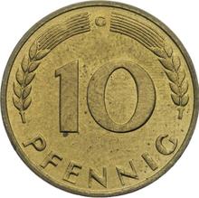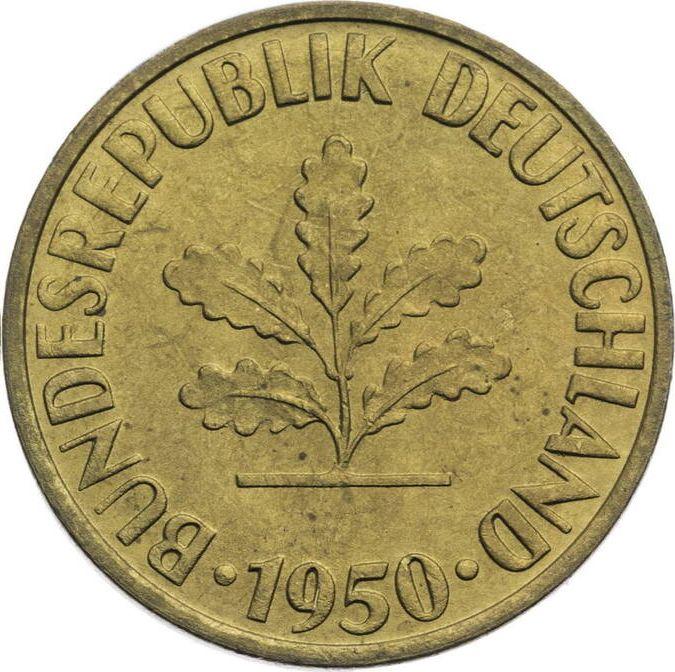 According to the latest data as of December 5, 2025 the average price of a coin 10 Pfennig 1950 with mark G is 8 USD for regular strike and 110 USD for coins minted using the PROOF technology. The coin is made of non-precious metal, so in poor condition it may have extremely low value and liquidity.