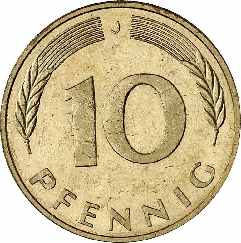 Find out the current coin value of the German 10 Pfennig 1982 with mark J. This iron coin from the times FRG struck at the Hamburg Mint. Wondering how much a coin like this is worth? The record price belongs to the lot 2711 sold at the Fritz Rudolf Künker GmbH & Co. KG auction for EUR 270. Bidding took place February 7, 2017.
