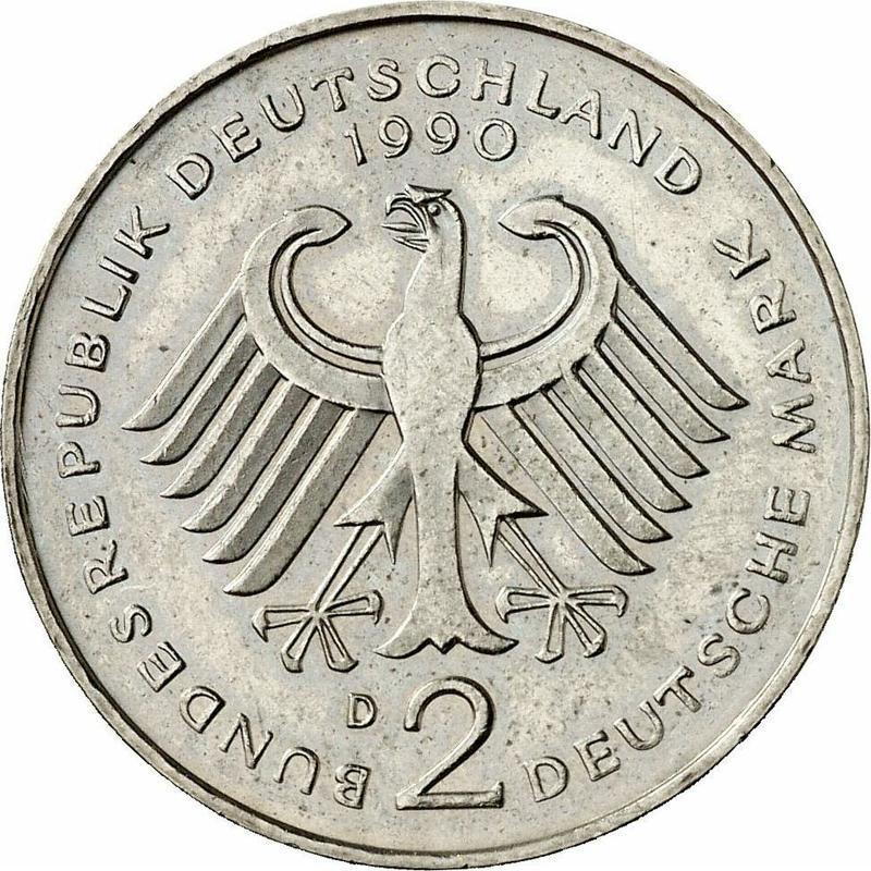 2 Mark 1990 D "Franz Josef Strauss" (Germany, FRG)
